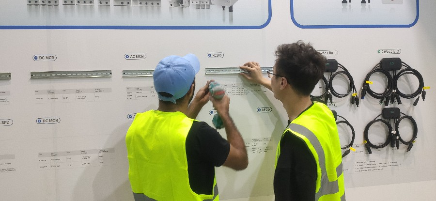 The products on display are mainly RSD(rapid shutdown device), DC MCB, DC MCCB, combiner box, grid tie box, DC SPD,Fuse Holder and so on.